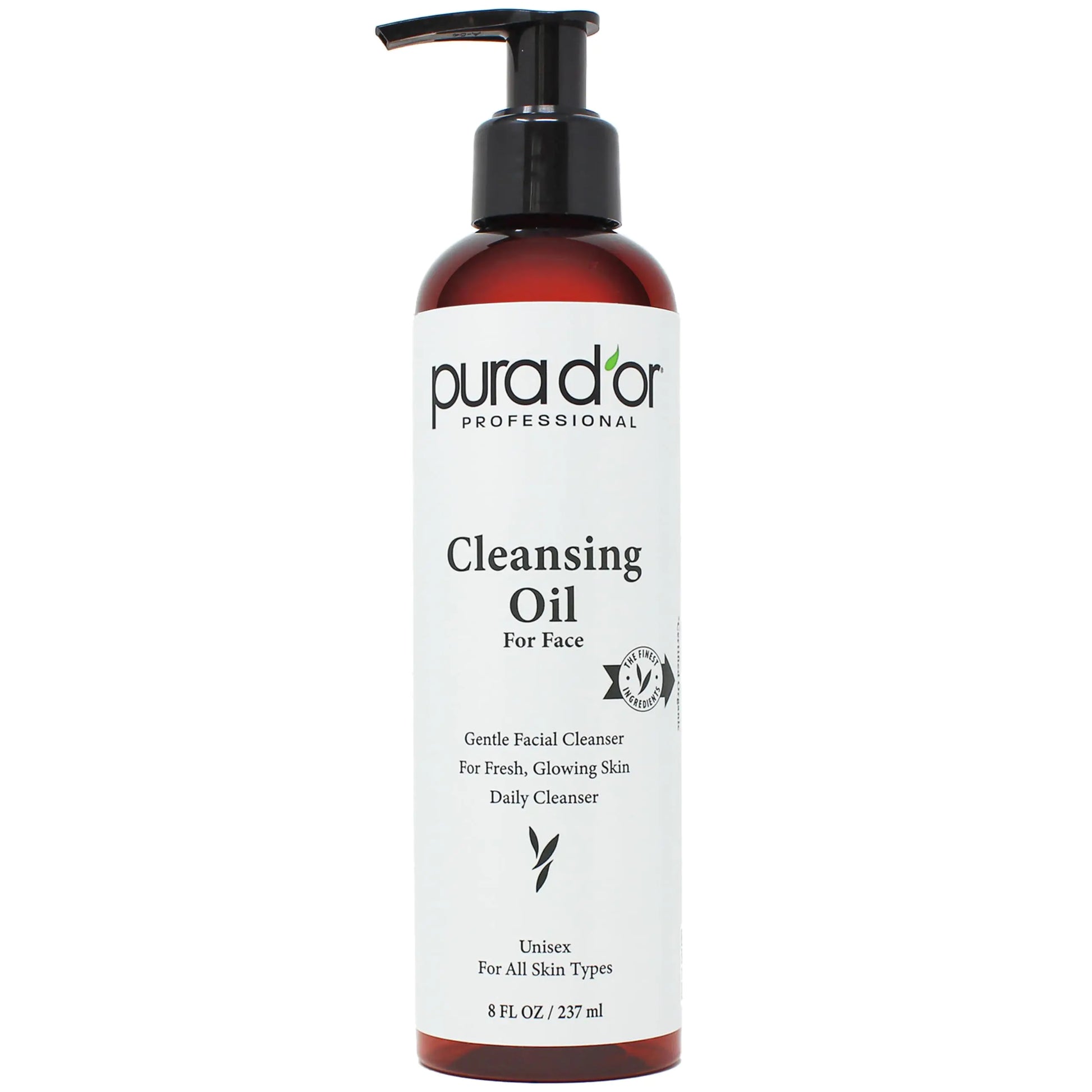 PURA DOR 8 Oz Facial Cleansing Oil - Nourishing Botanical Blend with & Vitamin Jojoba and Sunflower Oil - Gentle Makeup Remover & Deep Cleanser For Healthy Glowing Skin - Paraben-Free Beauty